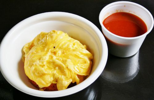 ドライカレーにぷるぷる卵をのせてイエローチキンカレーで美味しく仕上げました